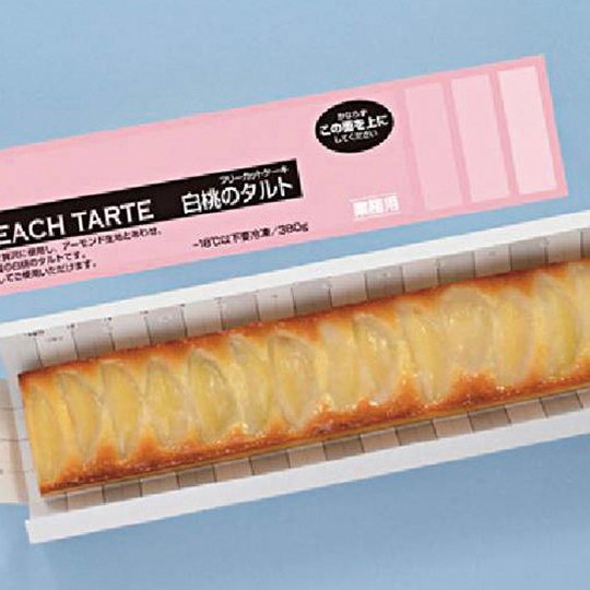 白桃シロップ漬け(果肉)(中国)、小麦粉(中国(小麦:オーストラリア、中国、その他))、マーガリン、砂糖、全卵(中国)、乳等を主要原料とする食品、アーモンドパウダー、白桃シロップ漬け(シロップ)(中国)、でん粉、醸造酢、食塩/クエン酸、膨張剤、ゲル化剤(ペクチン)、香料、着色料(カロチノイド)、(一部に小麦・卵・乳成分・大豆・もも・りんごを含む)
