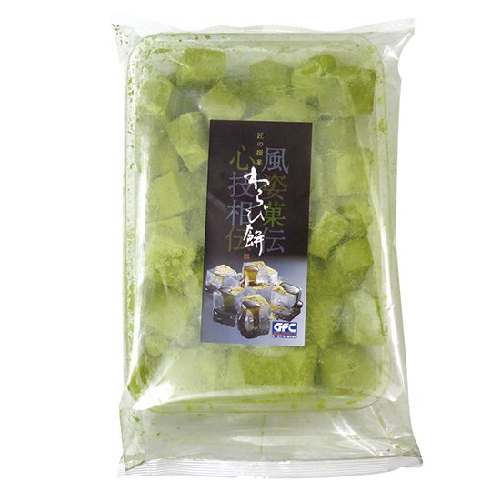 柔らかさの中にしっかりとした弾力と上品な甘さをもったわらび餅です。わらび粉を加えた餅の風味と抹茶の上品な香りが食欲をそそります。賽の目にカットされた餅の微妙な大きさの違いが手造り感を演出しています。※冷蔵庫内解凍をすると、商品が硬くなる可能性があります。