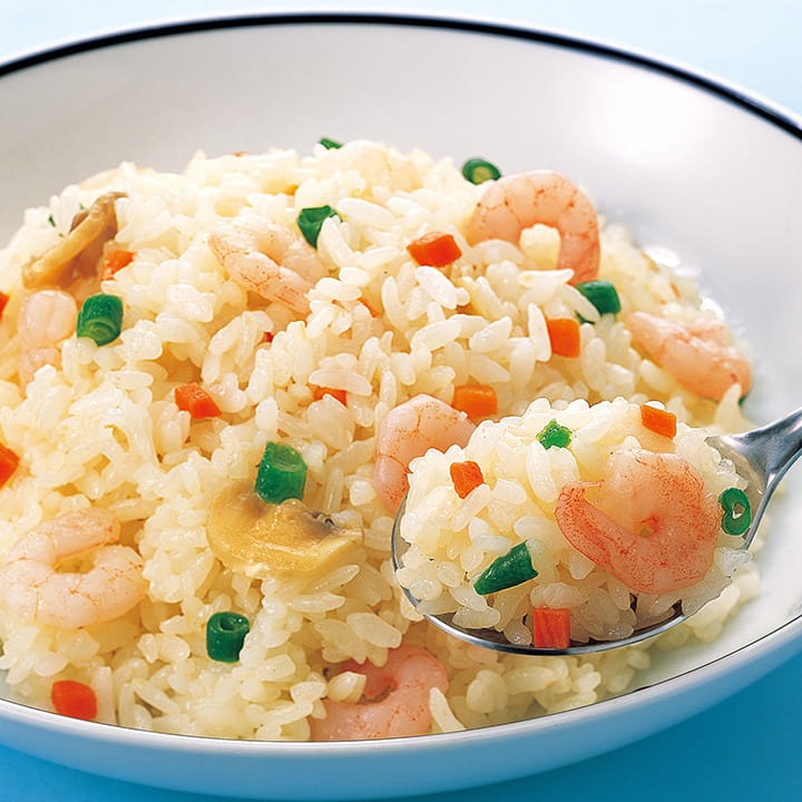 お米を炒めてから炊き上げ、ふっくらパラッとした食感に仕上げました。