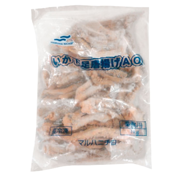 いか下足、食塩、衣(小麦粉、でん粉、食塩、ぶどう糖、香辛料)/調味料(アミノ酸等)、安定剤(グァー)、カロチノイド色素、(一部に小麦・いかを含む)