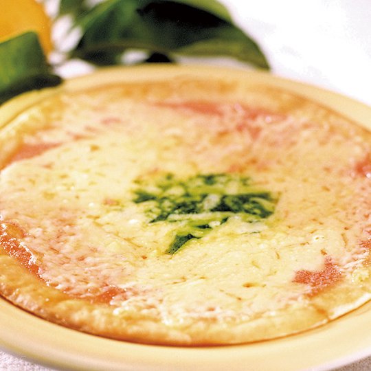 チーズと辛子明太子の風味が抜群の組み合わせ。ナチュラルチーズ・アンチョビと魚料理によくあうバジルソースをトッピング。