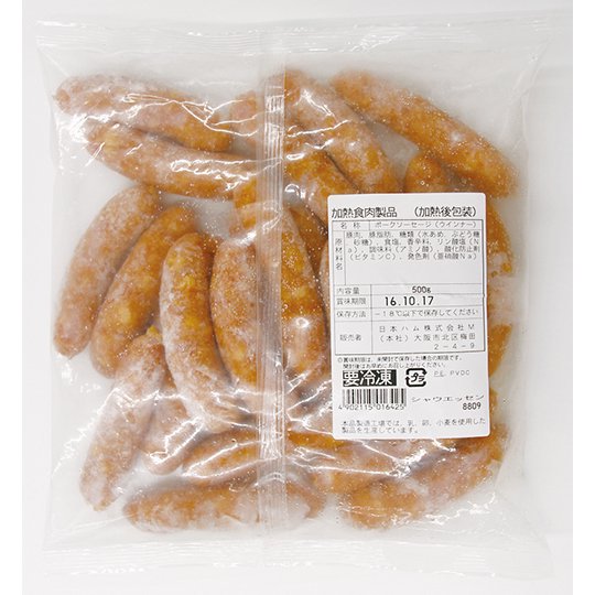 豚肉(アメリカ、カナダ、デンマーク、チリ、メキシコ、日本他)、豚脂肪(カナダ、アメリカ、イタリア、日本他)、糖類(水あめ、ぶどう糖、砂糖)、食塩、香辛料/リン酸塩(Na)、調味料(アミノ酸)、酸化防止剤(ビタミンC)、発色剤(亜硝酸Na)、(一部に豚肉を含む)