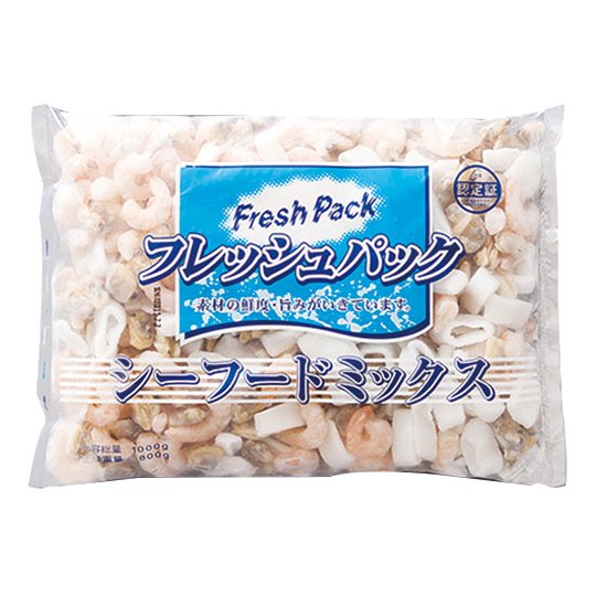 えび、いか、あさりを使用したシーフードミックスです。※割合=あさり31%:いか33%:えび36%
