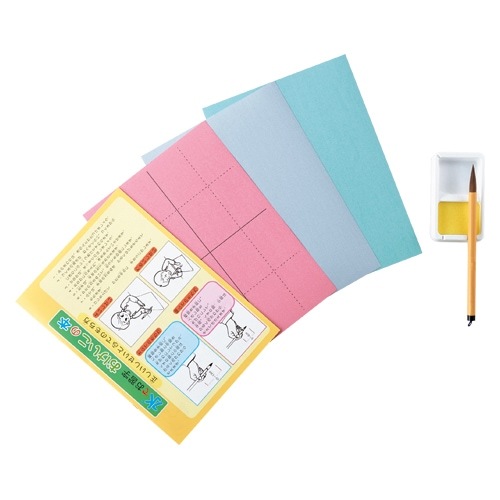 ●入数:1セット●セット内容:水で書く半紙(黒・緑・赤各1枚),太筆,おけいこの本,水書き用硯