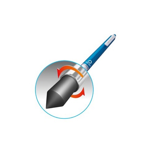 ●回転機構が2倍速く回るエンジンに進化。2倍速で芯がトガるので、より早く、更に細く一定の線幅が続き細かい文字もつぶれず、ハッキリと書きつづけられます。漢字からカナや英字まで画数に関わらず色々な文字で効果を実感できます。