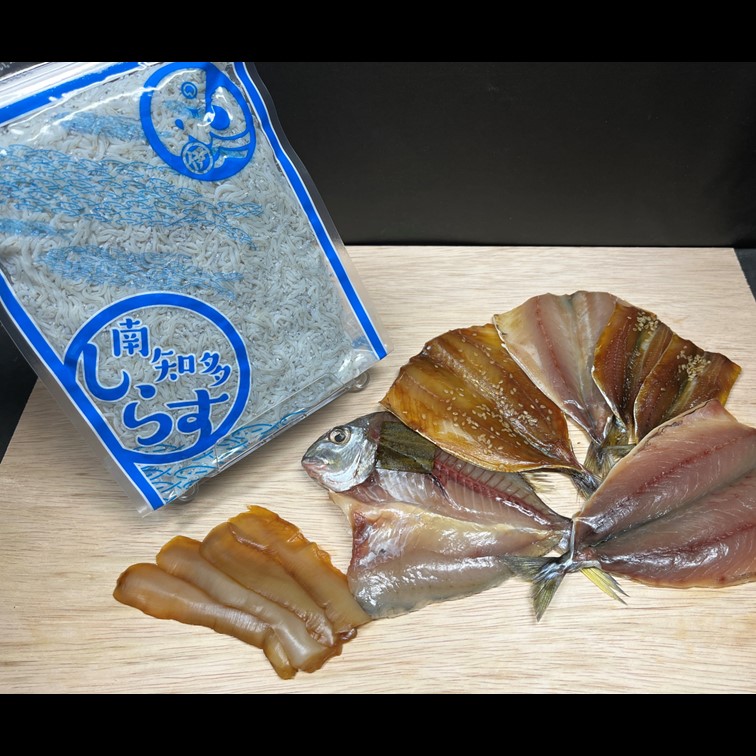 セット内容:愛知県産しらす干し200g+干物6種(あじ(塩・醤油)、たい塩、白ミル貝醤油、いわし醤油、さば塩)