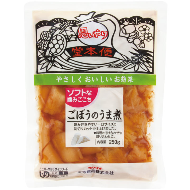 ごぼうに鰹節をまぶし、食べやすいようにやわらかく仕上げたお惣菜です。【UDF区分容易にかめる】