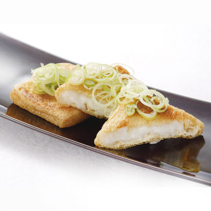 餅粉でつくった冷めても固くなりにくい餅を油揚げに詰めたいなりです。 お鍋やおでんなどに定番の人気商品です。 煮物はもちろん、焼き調理もおすすめです。煮ても餅が中から出てこないので、調理がしやすく好評です。