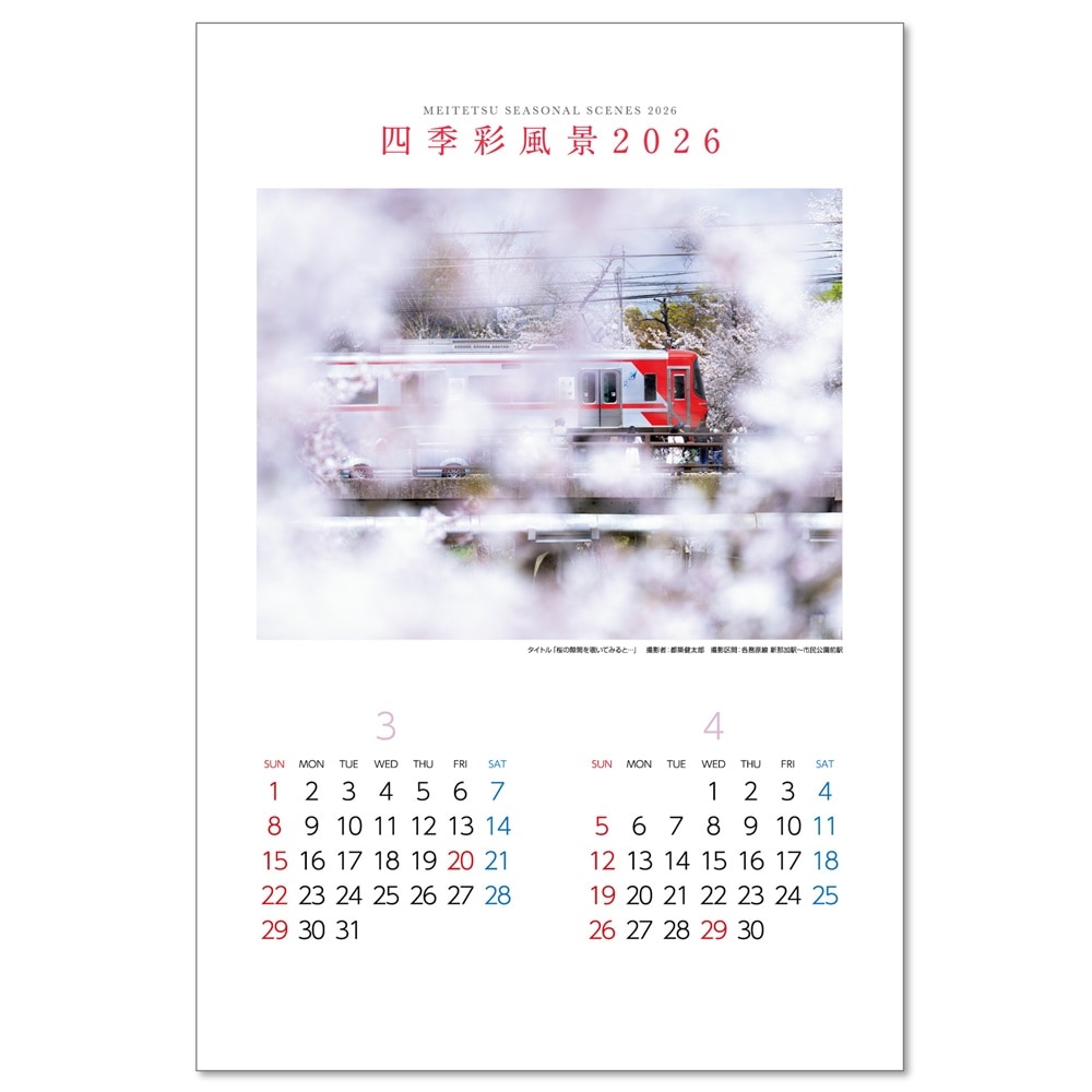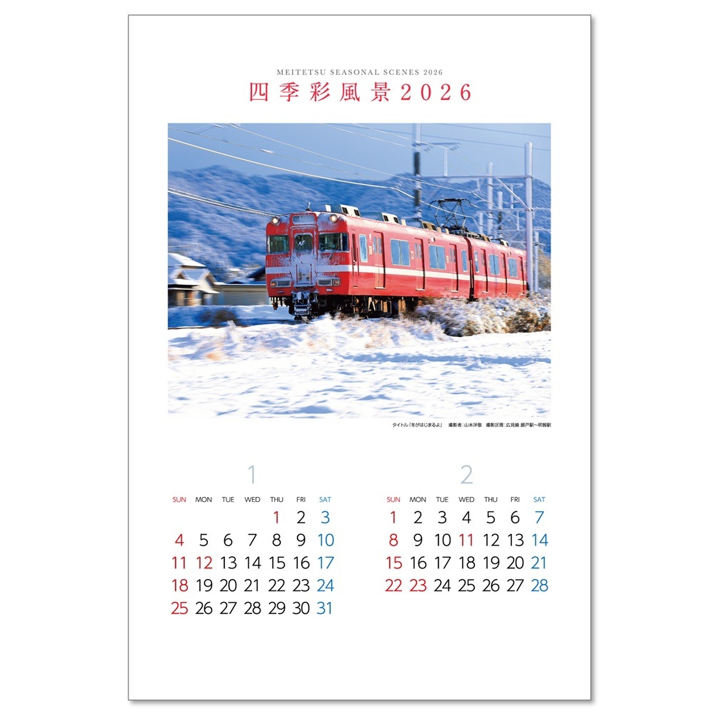 - ※「2026年名鉄電車カレンダー「四季彩風景」(壁掛 A2版)」は単独でのご配送となります。他の商品や、「2026年名鉄電車カレンダー「四季彩風景」卓上版」との同梱発送はできかねますので、あしからずご了承ください。